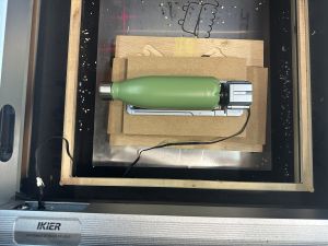 5. Über die Rahmen-Funktion testen, ob der Laserbereich auf der Flasche stimmt